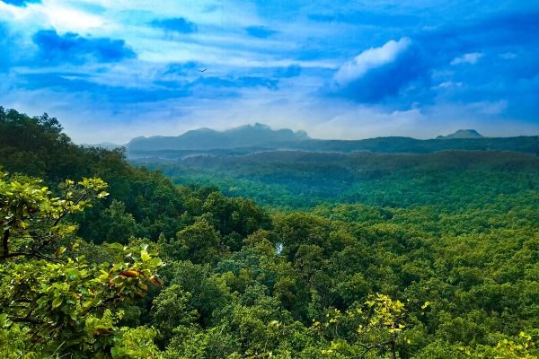 Relax in the serene hill station of Pachmarhi, known for waterfalls, caves, viewpoints, and lush greenery.